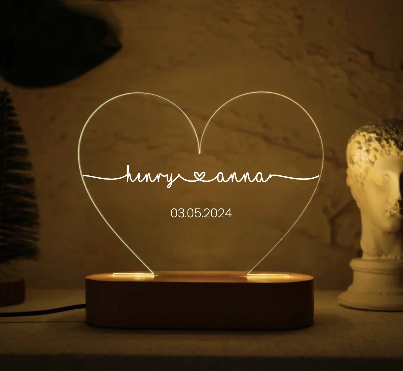 Verleihe eurem Zuhause eine persönliche Note mit unserem einzigartigen Herz-Nachtlicht. Ob zum Valentinstag, zum Jahrestag oder zur Hochzeit – dieses Geschenk bringt eure Liebe zum Strahlen.