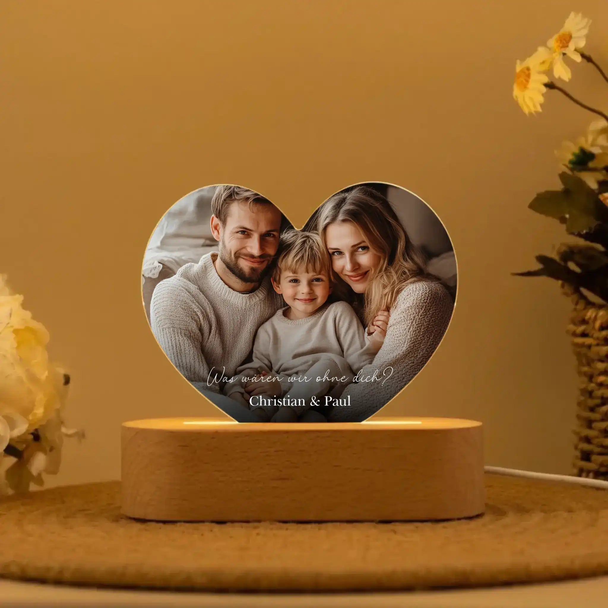 Euer Foto und die persönliche Widmung machen dieses Nachtlicht zu einem einzigartigen Symbol eurer besonderen Verbindung.