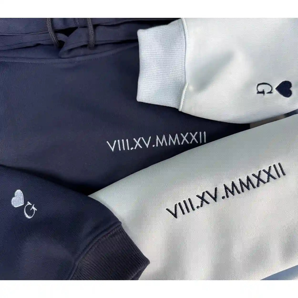 "Römische Zahlen" - Personalisierte, besticktes Sweatshirt-Set mit Widmung
